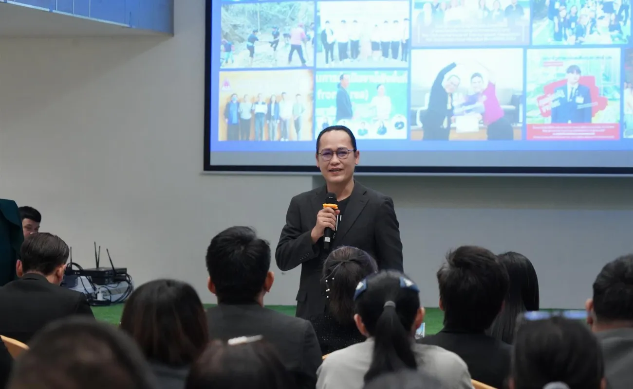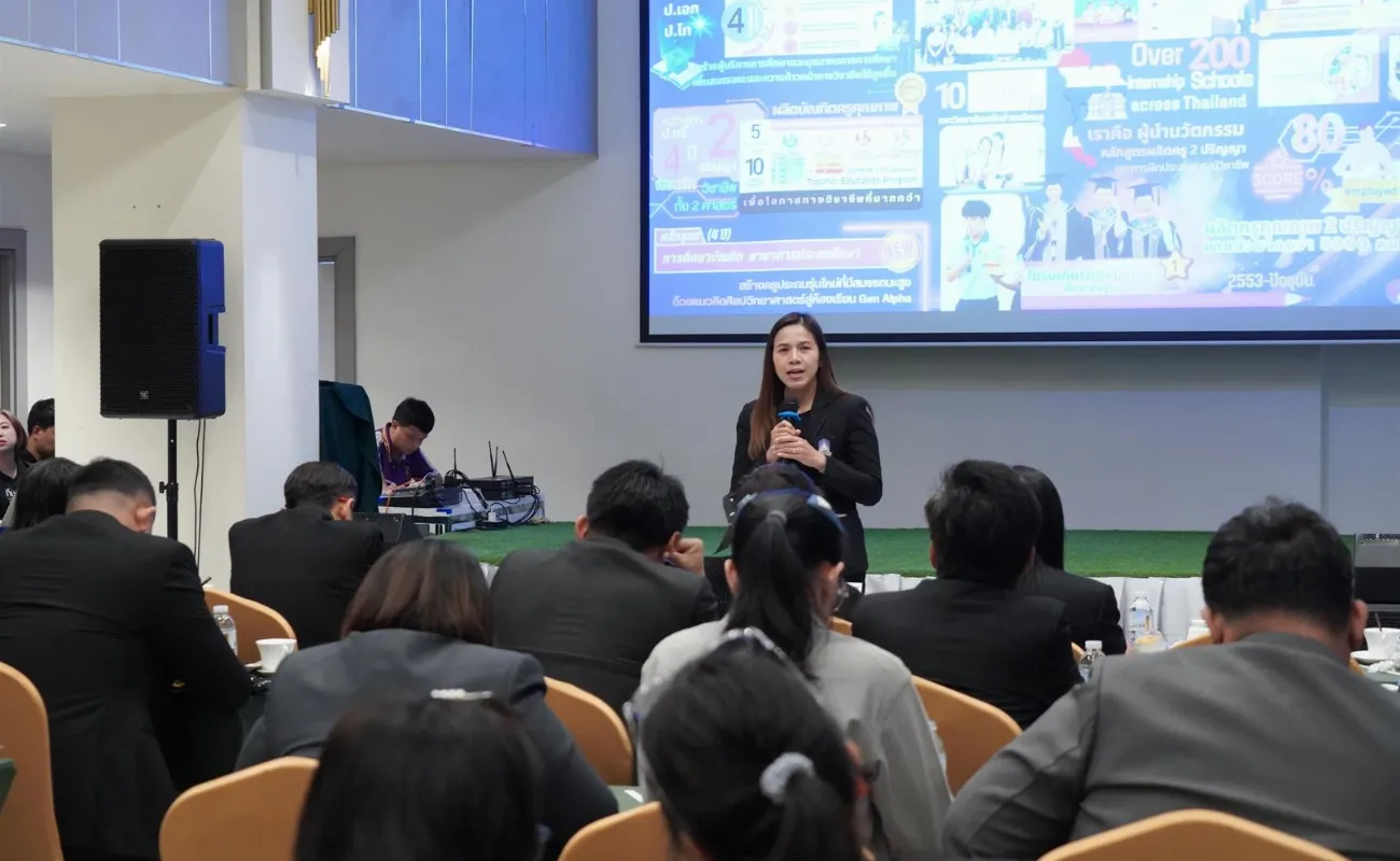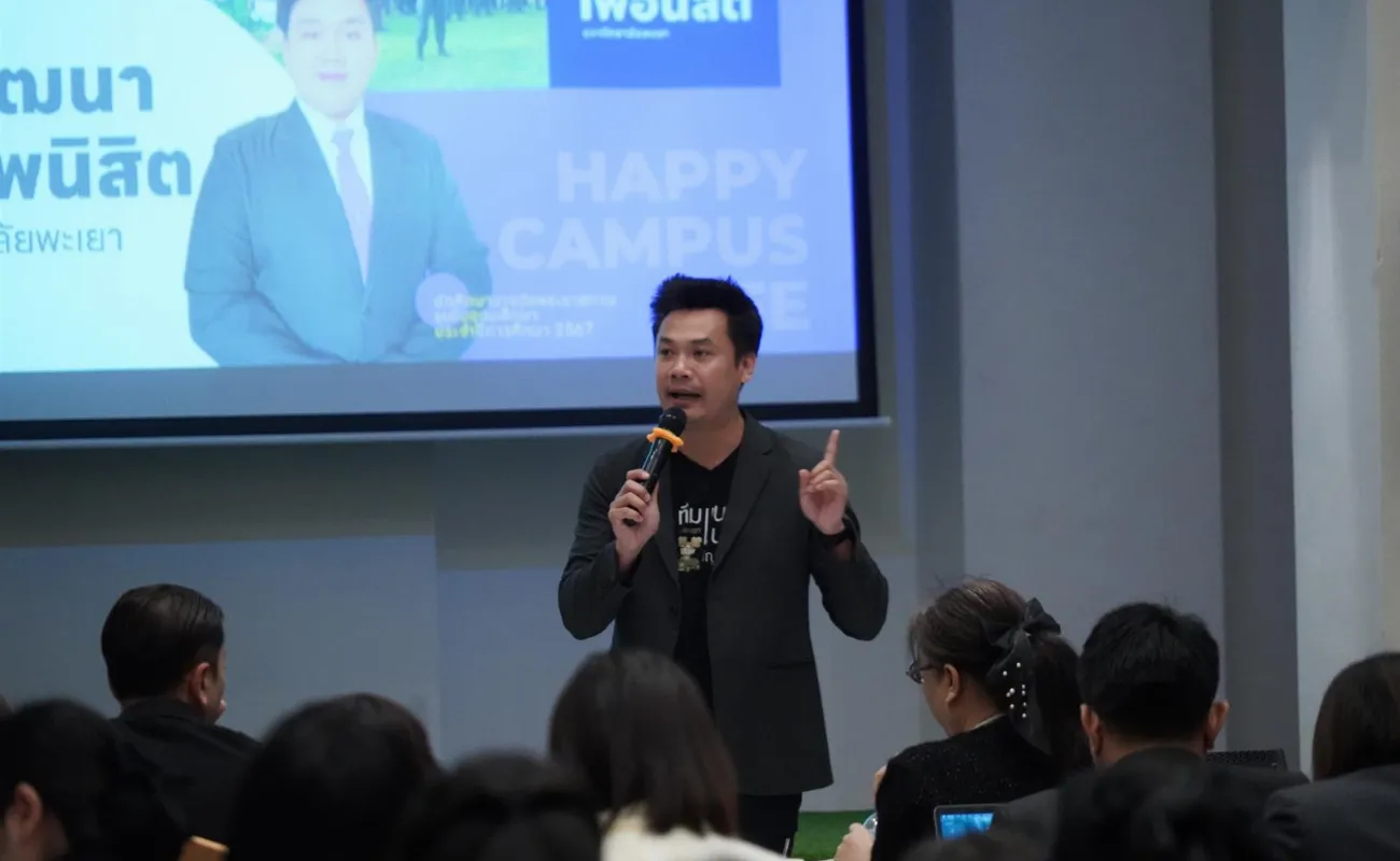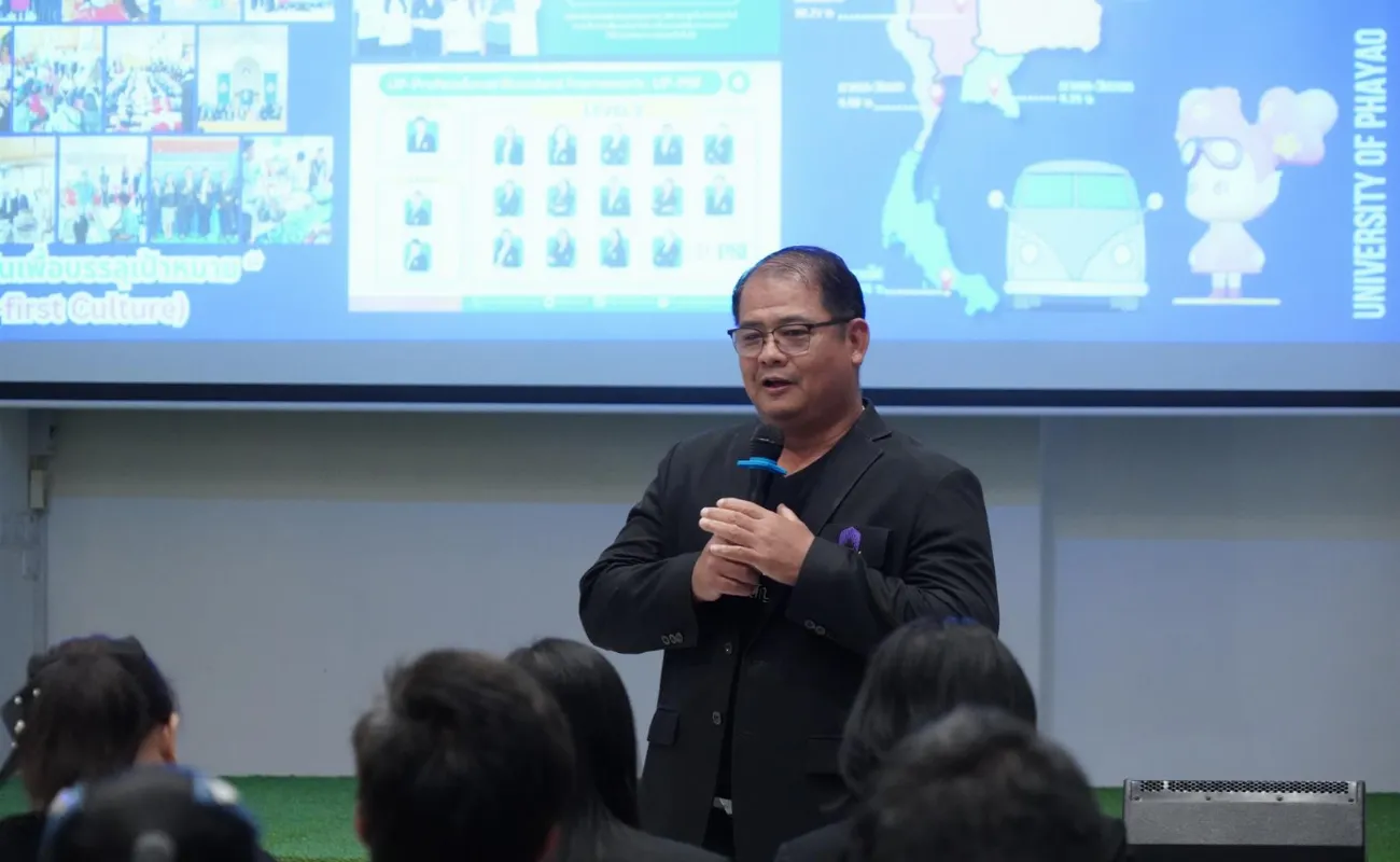 ผู้ช่วยศาสตราจารย์ ดร.ชลธิดา เทพหินลัพ รองอธิการบดีฝ่ายวิชาการ มหาวิทยาลัยพะเยา ได้บรรยายในหัวข้อ “Good environment nurtures individuals toward excellence” สภาวะแวดล้อมที่ดีช่วยหล่อหลอมให้เป็นคนดีคนเก่ง” โดยกล่าวถึง การสร้างคนดี คนเก่งอย่างสมดุล ส่งเสริมให้นิสิต “รับผิดชอบ มีน้ำใจ มีส่วนร่วม และมีแรงบันดาลใจในการเรียนรู้” ควบคู่กับพัฒนาทักษะที่จำเป็นในศตวรรษที่ 21 จนเกิดเป็น “คนดี คนเก่ง” ตามอัตลักษณ์ที่มหาวิทยาลัยมุ่งหวัง อีกทั้งมหาวิทยาลัยพะเยายึดปรัชญาการจัดการศึกษา “ประสบการณ์สร้างปัญญา” และหลัก “ดำรงชีวิตด้วยปัญญาประเสริฐที่สุด” พร้อมทั้งการพัฒนาการจัดการเรียนการสอนและพัฒนาอาจารย์กรอบอาจารย์มืออาชีพ มหาวิทยาลัยพะเยา (UP-PSF) ภายใต้สภาพแวดล้อมที่ส่งเสริมการเรียนรู้ตลอดชีวิต (Lifelong Learning) นวัตกรรมเพื่อสังคม (Social Innovation) การได้รับการยอมรับในระดับโลก (World Recognition) และ การพัฒนาที่ยั่งยืน (Sustainable Development) ความสำเร็จของมหาวิทยาลัยพะเยาที่ได้เข้าสู่การจัดอันดับมหาวิทยาลัยโลก และ “Future Learning Environment @UP” กระบวนการจัดการศึกษาที่ตอบรับกับบริบทสังคมที่เปลี่ยนแปลงไป และ สภาพการณ์ที่เปลี่ยนแปลงไปในปัจจุบัน การเตรียมคนและเสริมสร้างศักยภาพคนให้มีสมรรถนะและทักษะแห่งอนาคต โอกาสทางการศึกษา และสภาพแวดล้อมการเรียนรู้ จึงมีความสำคัญเป็นอย่างมาก มหาวิทยาลัยพะเยามีหลักสูตร สิ่งอำนวยความสะดวก ผู้สอนและโค้ช หลักสูตร CWIE (Cooperative and Work Integrated Education) คือ หลักสูตรที่บูรณาการการเรียนรู้ในมหาวิทยาลัยกับประสบการณ์ทำงานจริงในสถานประกอบการ โดยมีหลายรูปแบบ เช่น เรียนสลับกับทำงาน (Parallel) หรือเรียนทฤษฎีให้ครบแล้วไปทำงาน (Separate) โดยเน้นสร้างสมรรถนะให้บัณฑิตพร้อมทำงานได้ทันที และ Skill Transcript ซึ่งดำเนินรายการโดย ผู้ช่วยอธิการบดี อาจารย์ณัฐวุฒิ สมยาโรน และ อาจารย์อุดมศักดิ์ จิรกาลกุลเกษม จากนั้น ผู้ช่วยศาสตราจารย์ ดร.น้ำเงิน จันทรมณี ผู้อำนวยการสถาบันนวัตกรรมการเรียนรู้ ได้กล่าวถึง UP AI Connect AI สำหรับนิสิตและบุคลสกรมหาวิทยาลัยพะเยา หลักสูตร Pre-Degree ให้นักเรียน ที่กำลังศึกษาในระดับชั้นมัธยมศึกษาตอนปลาย ที่กำลังจะเข้าศึกษามหาวิทยาลัยพะเยา สามารถลงทะเบียนเรียนก่อนได้ และสามารถเลือกรับผลการเรียน เมื่อมาเป็นนิสิตมหาวิทยาลัยพะเยา และหลักสูตร Non-Degree หลักสูตรอบรมระยะสั้น ที่ออกแบบมาสำหรับผู้เรียนทุกช่วงวัย ทุกอาชีพ เพื่อพัฒนาทักษะใหม่ (Newskill) หรือการเพิ่มทักษะที่มีอยู่ (Upskill) หรือพัฒนาทักษะเดิมให้ดีขึ้น (Reskill) และสามารถสะสมสมรรถนะในรายวิชาของมหาวิทยาลัยพะเยาได้ หลังจากนั้น อาจารย์ณัฐวุฒิ สมยาโรน ผู้ช่วยอธิก