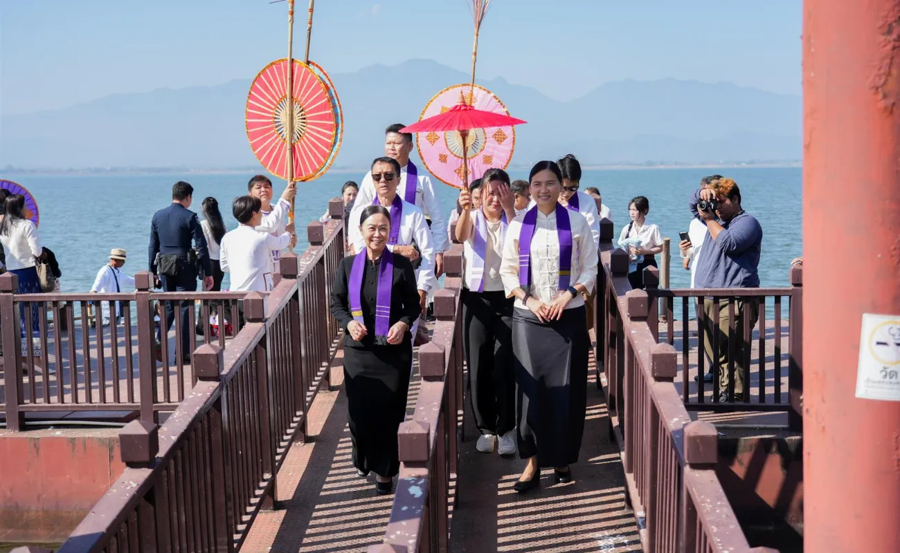 ในการนี้ มีผู้บริหารมหาวิทยาลัยพะเยาและกองบริการการศึกษาเข้าร่วมงาน ได้แก่ ผู้ช่วยศาสตราจารย์ ดร.ชลธิดา เทพหินลัพ รองอธิการบดีฝ่ายวิชาการ, ผู้ช่วยศาสตราจารย์ ดร.นรินธน์ นนทมาลย์ ผู้ช่วยอธิการบดี และ นางสาววิไลลักษณ์ ครุฑปาน รักษาการแทนผู้อำนวยการกองบริการการศึกษา พร้อมด้วยบุคลากร ร่วมพิธีด้วยความพร้อมเพรียง ท่ามกลางบรรยากาศแห่งศรัทธาและความงดงามของวัฒนธรรมล้านนา